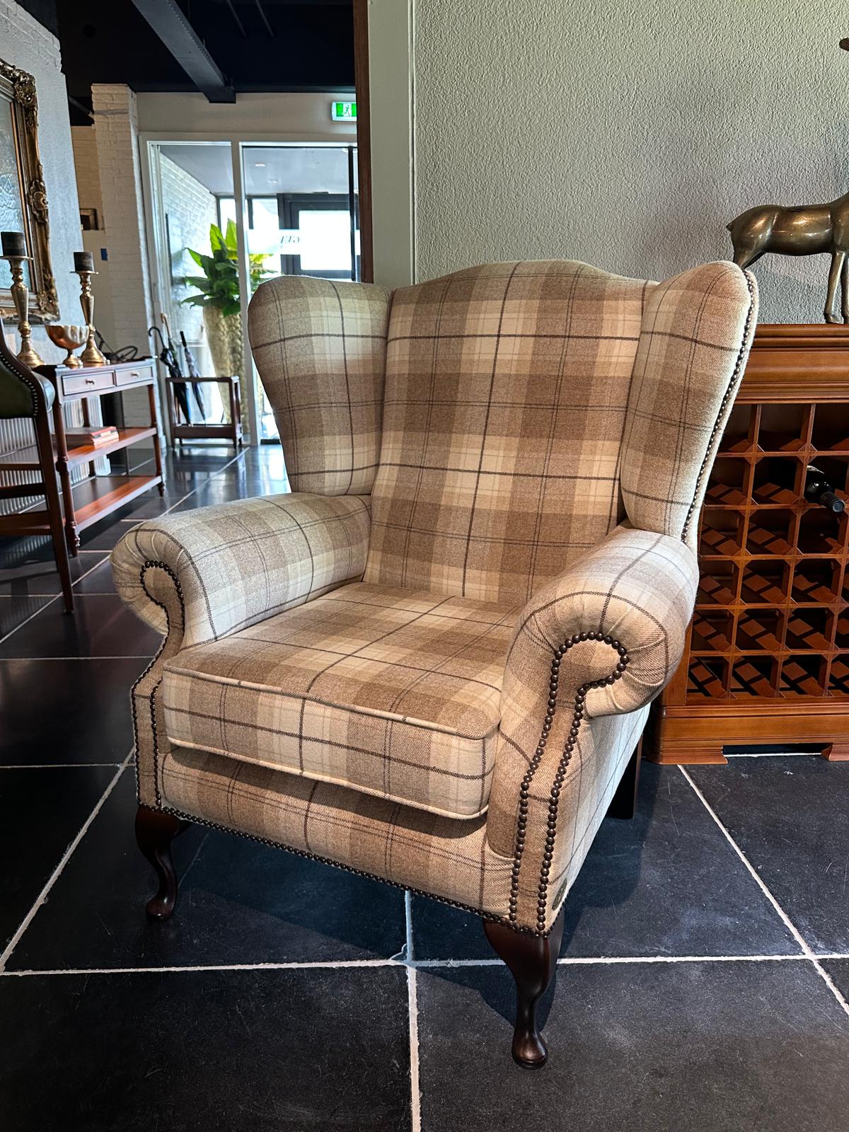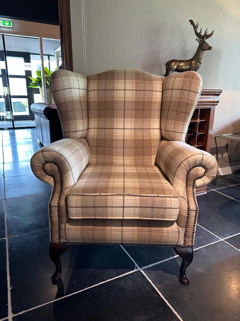 De Blenheim High Chair is de meest traditionele Wing Chair Chesterfield in het zeer uitgebreide chesterfield programma van Springvale. Uitgevoerd in een prachtige wollen stof uit de Harris Tweed range.
