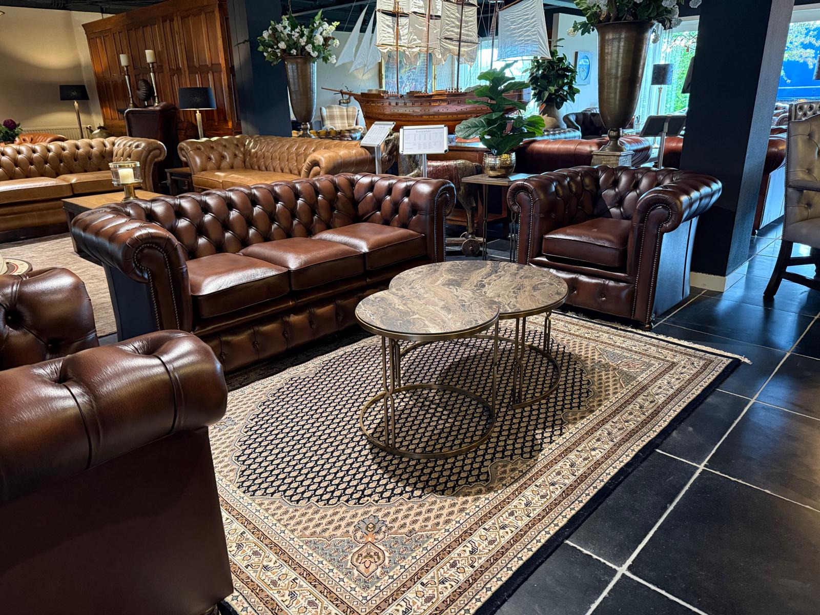 Wij bezorgen onze Chesterfield-meubels kosteloos met onze eigen bezorgdienst bij bestellingen boven een vastgesteld minimumbedrag (€ 1.500,-). Valt uw bestelling daaronder, dan kunnen er – afhankelijk van het meubel en de bezorglocatie – leveringskosten van toepassing zijn.
